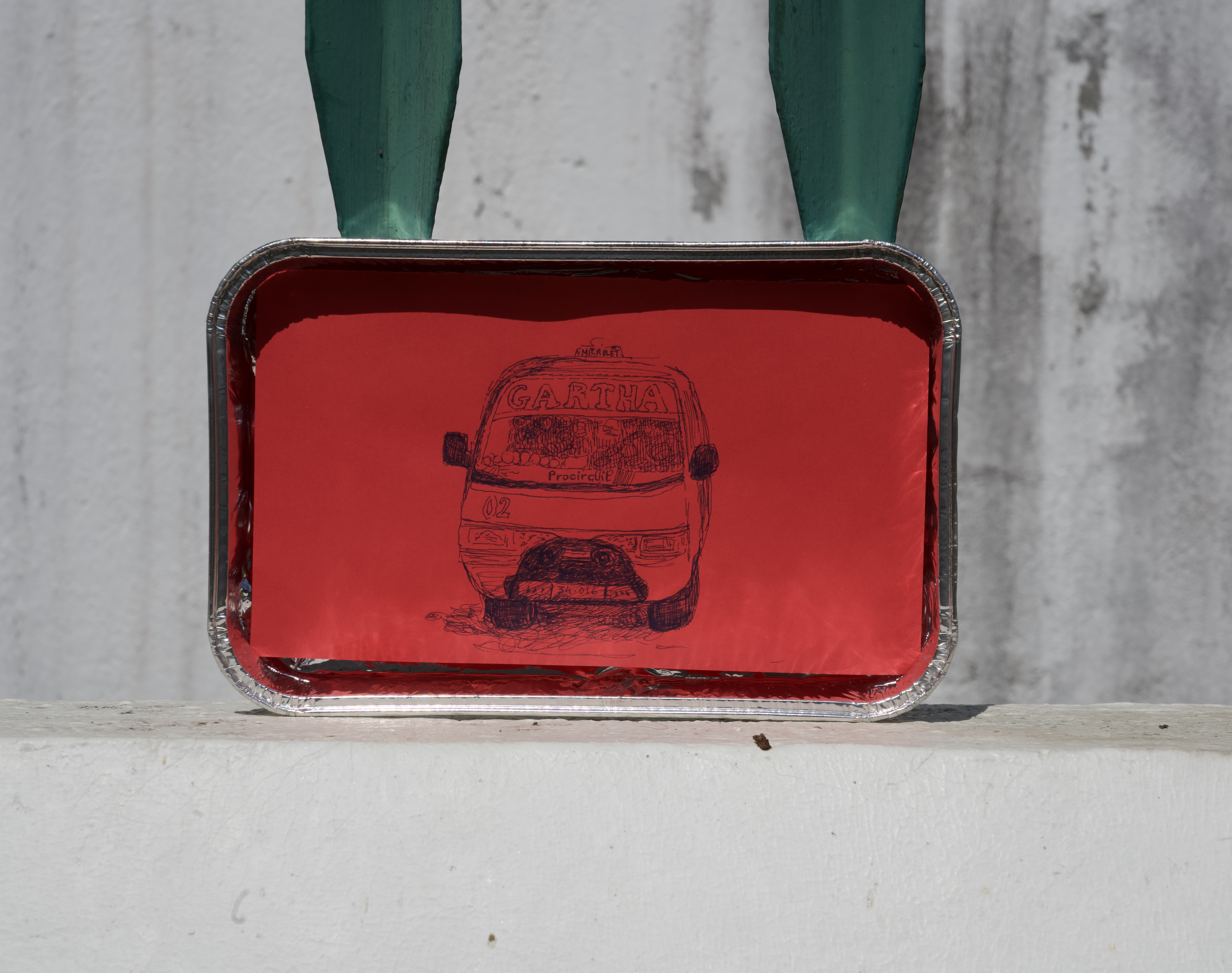 Colored paper, 90g, ink, aluminium foil.